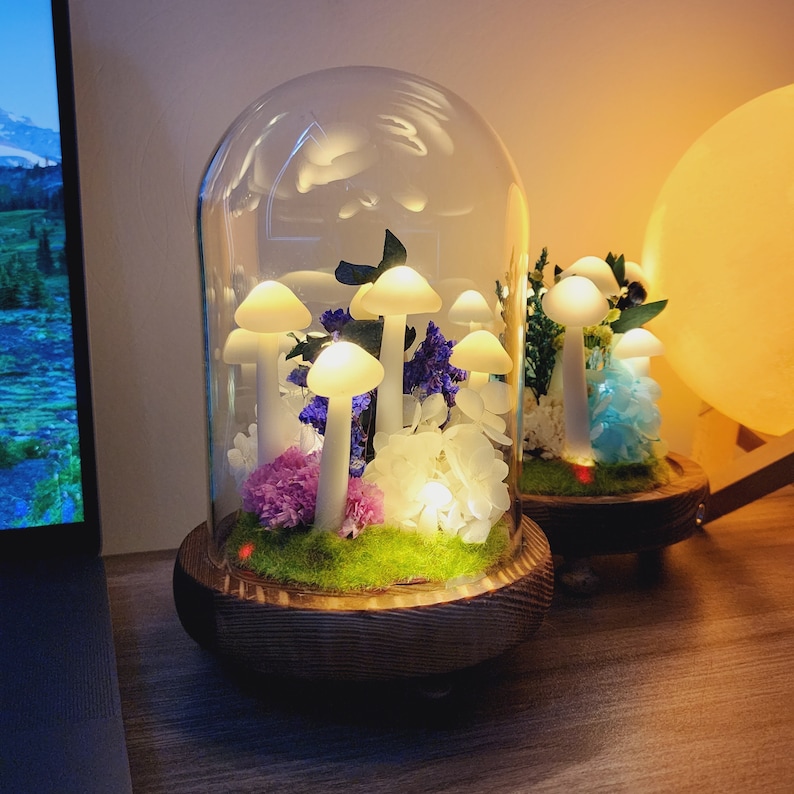 I used warm light to add a different color to the mushroom lamp, so that you can be overwhelmed by the warmth of the light at first sight. Yes, this is an incredible mushroom lamp!