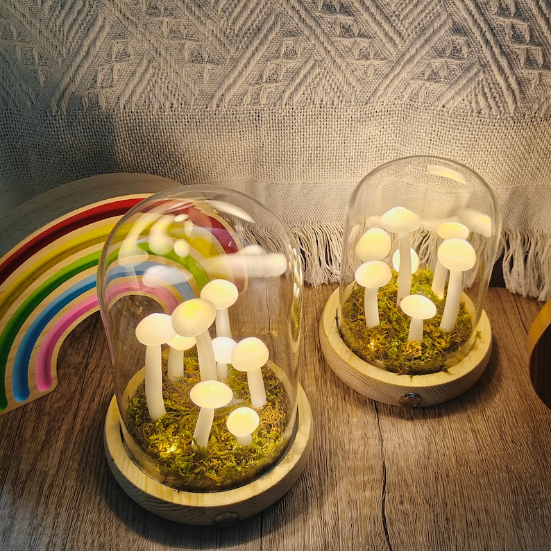 I used warm light to add a different color to the mushroom lamp, so that you can be overwhelmed by the warmth of the light at first sight. Yes, this is an incredible mushroom lamp!